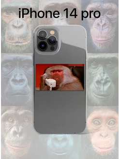 Чехол на iPhone 14 PRO с обезьяной мем, обезьяна прикол