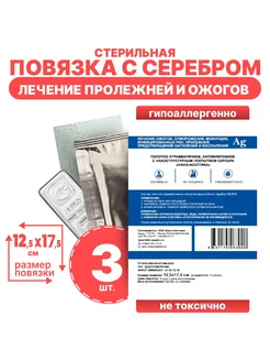 Повязка с серебром для лечения пролежней 12,5x17,5см 3шт