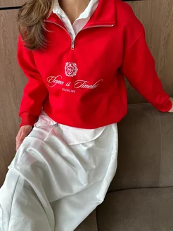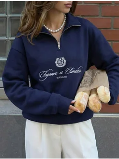 Свитшот полузамок оверсайз без начеса с принтом кофта