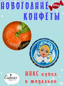 Новогодние шоколадные конфеты медальон 500 гр