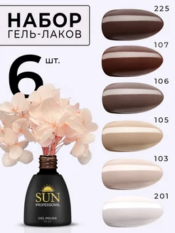 Набор коричнево-бежевых гель лаков для ногтей 6шт