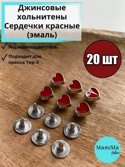 Хольнитены джинсовые сердечки красные (эмаль) 20 шт