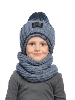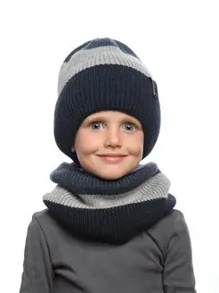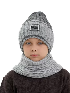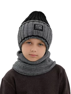 Комплект, шапка со снудом зимняя на флисе подростковая