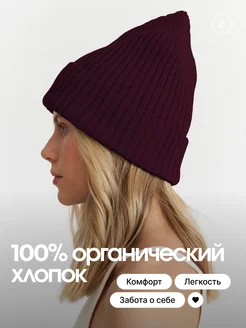 Шапка бини, тыковка. Бордовая. Хлопок 100%