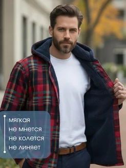 Рубашка теплая на флисе в клетку с капюшоном