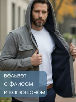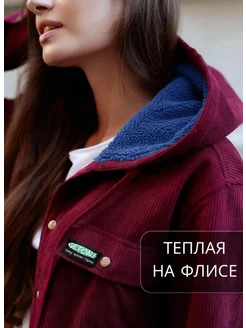 Рубашка теплая вельветовая с капюшоном на флисе
