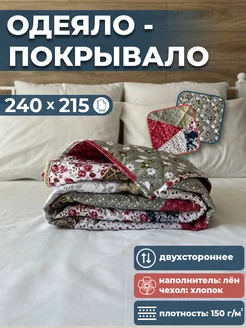 Покрывало одеяло на кровать льняное пэчворк 240х215