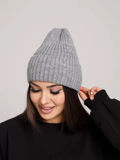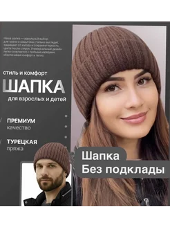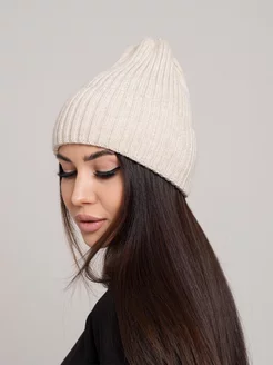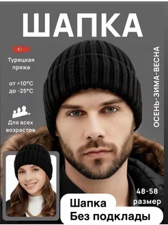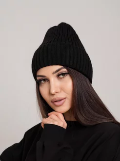 Шапка бини тыковка с отворотом весенняя бесшовная