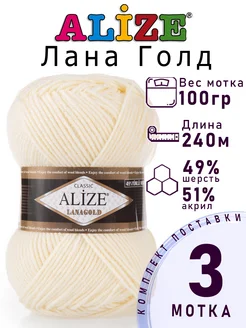 Пряжа Ализе Ланаголд цвет №01 кремовый 3 мотка