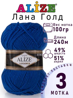 Пряжа Ализе Ланаголд цвет №141 васильковый 3 мотка