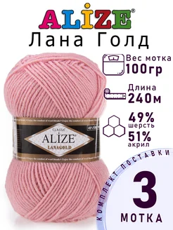 Пряжа Ализе Ланаголд цвет №161 сухая роза 3 мотка