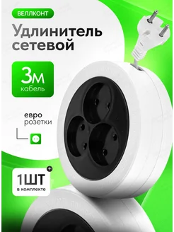 Сетевой удлинитель скручивающийся круглый, 1шт по 3м