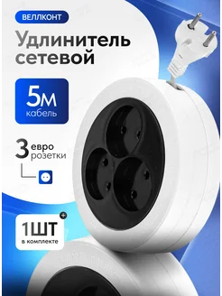 Сетевой удлинитель скручивающийся круглый, 3шт по 5м