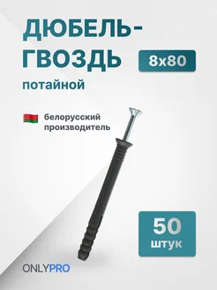 Дюбель гвоздь для бетона 8х80 потай 50 шт