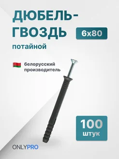 Дюбель гвоздь для бетона 6х80 потай 100 шт