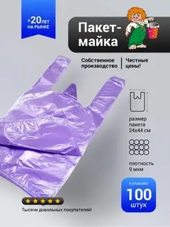 Фиолетовый пакет майка 100 шт полиэтиленовый товары для дома