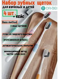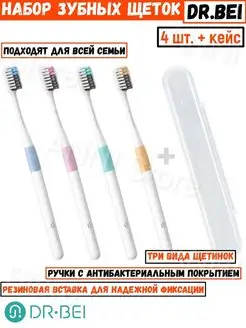 Зубные щетки мягкие набор с футляром Dr Bei 4 шт