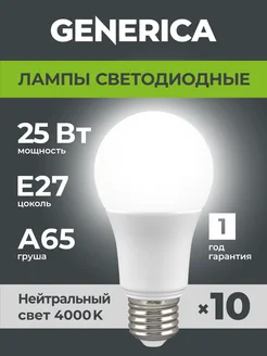 Светодиодные лампочки A60 Груша Е27 25Вт нейтральныйсвет10шт