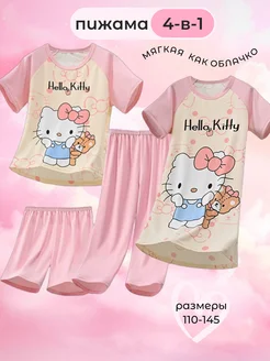 Пижама для девочки c шортами и штанами Хеллоу Китти 4 в 1