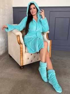 Халат для дома для бани теплый с капюшоном махровый