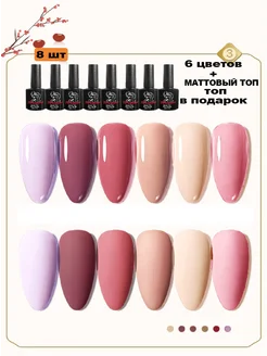 6 гель-лаков + матовый топ и топ