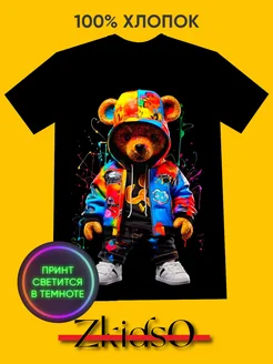 Футболка светящаяся с принтом для подростка мишка