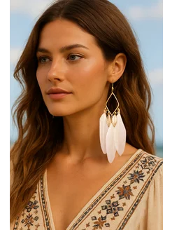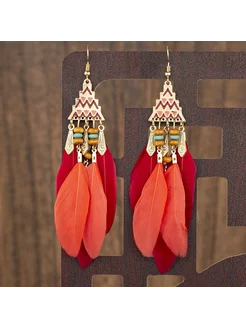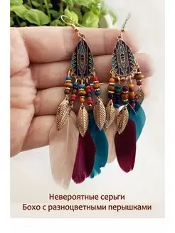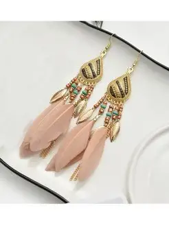 Серьги в стиле Бохо белые розовые черные бордовые перья