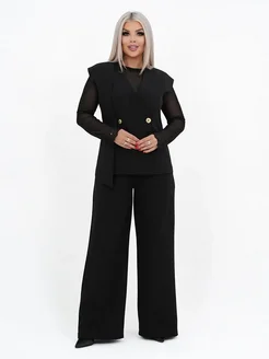 Комбинезон вечерний праздничный нарядный брючный со шлейфом
