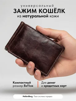 Зажим кошелек для денег и карт натуральная кожа