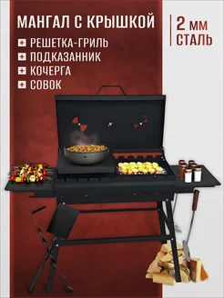 Мангал 3 мм с крышкой, термометром и решеткой-гриль