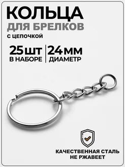 Основа для брелоков, набор колец с цепочкой 25 шт