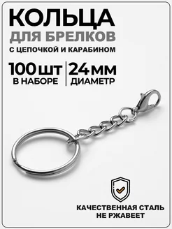 Основа для брелока набор колец с цепочкой и карабином 100 шт