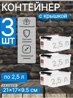 Контейнер для хранения с крышкой 2,5 литров 3 штуки
