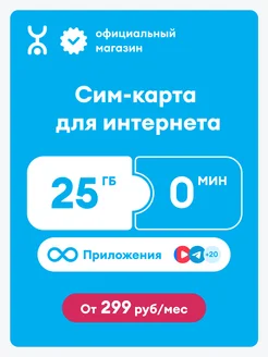 Сим-карта 25 Гб, безлимиты на мессенджеры, баланс 300 руб