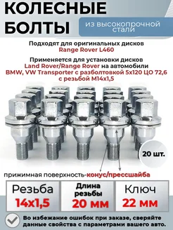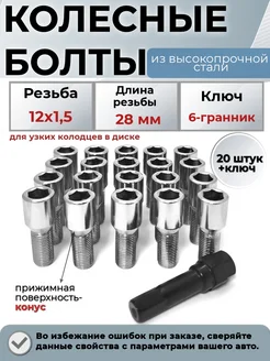 Гайки колесные12х1.5 высота 35 мм ключ 19 20 шт
