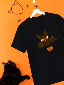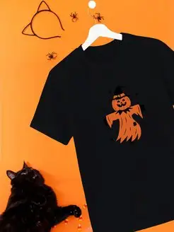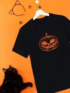 Футболка Хеллоуин Тыква Черная Кошка Праздничный Принт