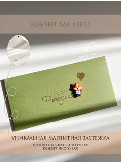 Конверт для денег зеленый лис