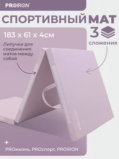Мат спортивный 183х61х4 см, 3 сложения, розовый