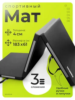 Мат спортивный 183х61х4 см, 3 сложения, черный