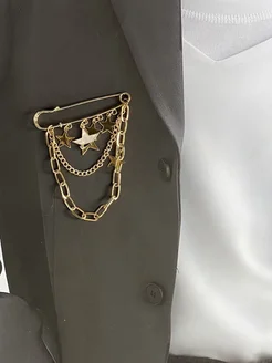Брошь булавка большая с цепочками Звезды