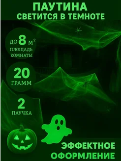 Искусственная паутина с пауками на хэллоуин 20 гр светящаяся