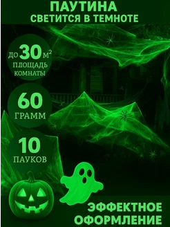 Паутина с пауками на хэллоуин 60 гр светящаяся