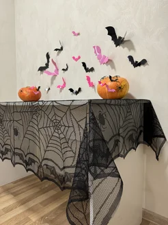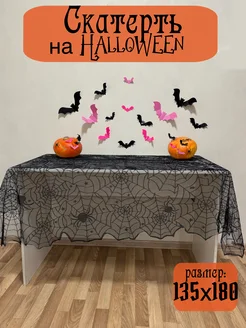 Скатерть Паутина с летучими мышами на Хеллоуин 120х160
