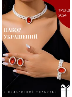 Набор бижутерии с жемчужным колье, браслетом и серьгами