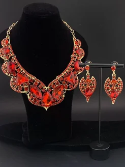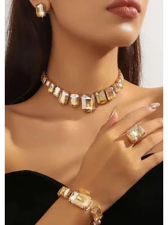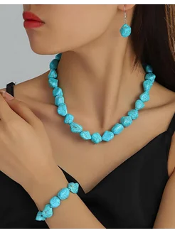 Набор колье крупные синие серьги браслет кольцо Хюррем