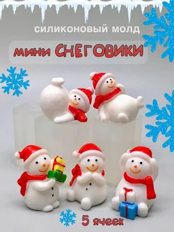 Молд новогодний для шоколада свечей и мыла снеговик 5 ячеек