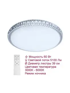 Люстра потолочная светодиодная "МОХИТО" 60 Вт с пультом