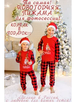 Пижама детская новогодняя с колпаком новый год