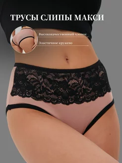 Трусы женские хлопок кружевные слипы средней посадки черные
