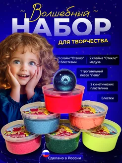 Подарочный набор слаймы, кинетический пластилин и блестки